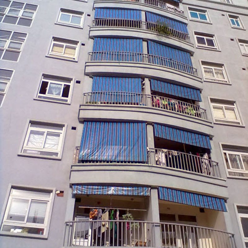 – Bạt che nắng tự cuốn với nhà chung cư còn che máy giặt, đồ đạc ngoài ban công, an toàn cho trẻ.