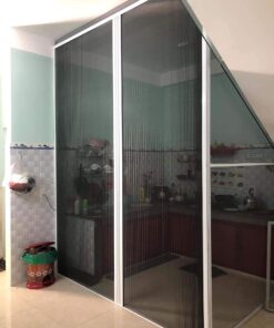 Cửa lưới chống muỗi dạng xếp thông dụng và dễ sử dụng nhất với thiết kế có khả năng xếp gọn nhờ kiểu thiết kế giống nan quạt. Cửa lưới này có phần khung và ray đẩy ra kéo vào dễ dàng giống thiết kế cánh cửa trượt. Cửa chống muỗi dạng xếp được thiết kế với nhiều cách thích hợp cho các khu vực cửa ra vào, cửa văn phòng,… Màn cửa lưới chống muỗi dạng xếp có nhiều màu sắc đa dạng như vân gỗ, đen, ghi, xám,…